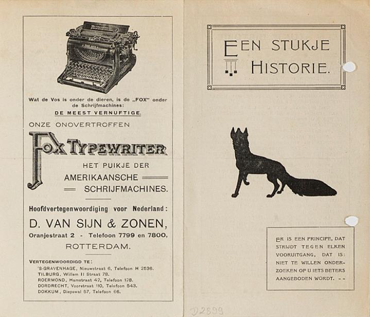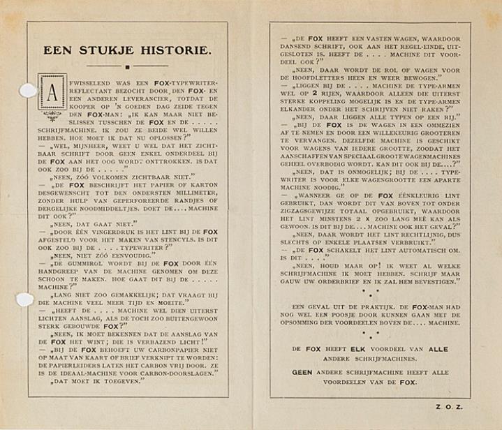 Faltprospekt in niederländischer Sprache für Schreibmaschine Fox