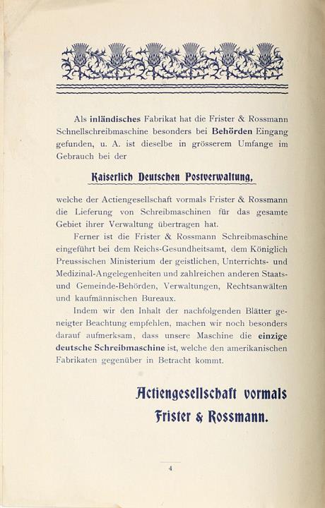 Referenzen der Frister & Rossmann Schnellschreibmaschine