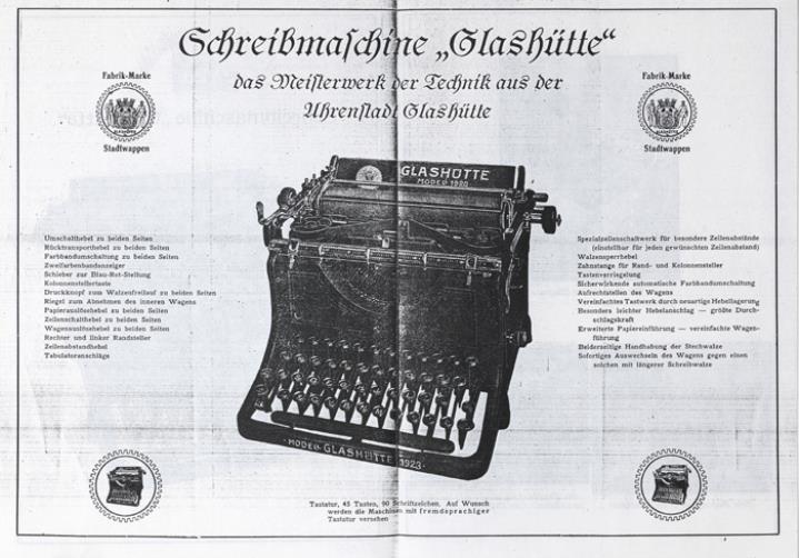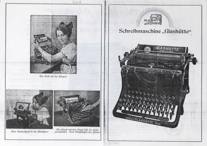 Faltprospekt für Schreibmaschine Glashütte Modell 1923 Fotokopie