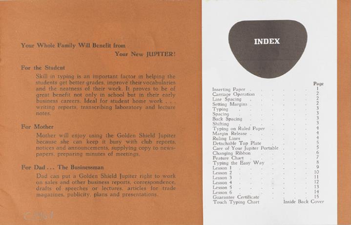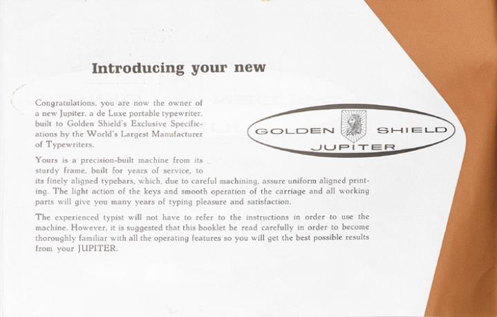 Bedienungsanleitung für Schreibmaschine Golden Shield Jupiter instructions for its use and care!