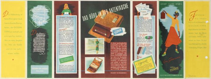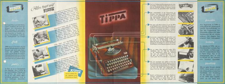 Faltprospekt für Schreibmaschine Gossen Tippa Leicht. Flach. Stabil Grafik: Aktiv-Werbung Wiesbaden