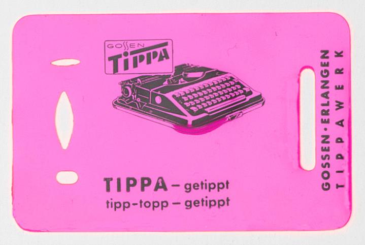 Bedienungsanleitung für Kleinschreibmaschine Gossen Tippa mit beiliegender Radierschablone Nr. t-15-1153-336-e-d Jahreszahl handschriftlich auf Anleitung vermerkt