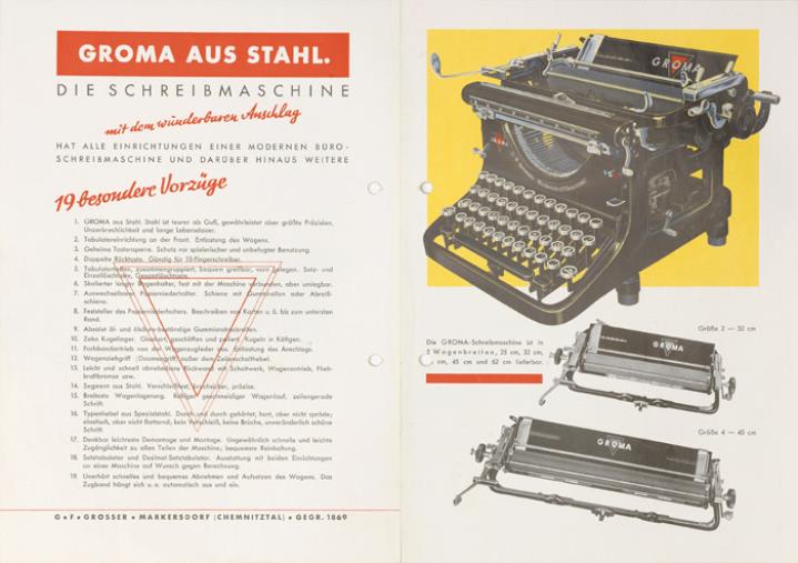 Faltprospekt für Schreibmaschine Groma Nr. 100.2.38 Grafik: Elm