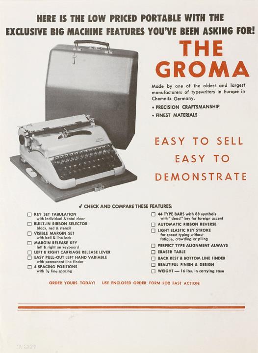 Prospekt für Schreibmaschine Groma Here is the low priced portable with the exclusive big machine features you've been asking for!