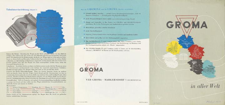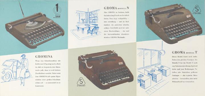 Faltprospekt für Schreibmaschine Groma Nr. 8287/52 Grafik: h/w Datum handschriftlich vermerkt