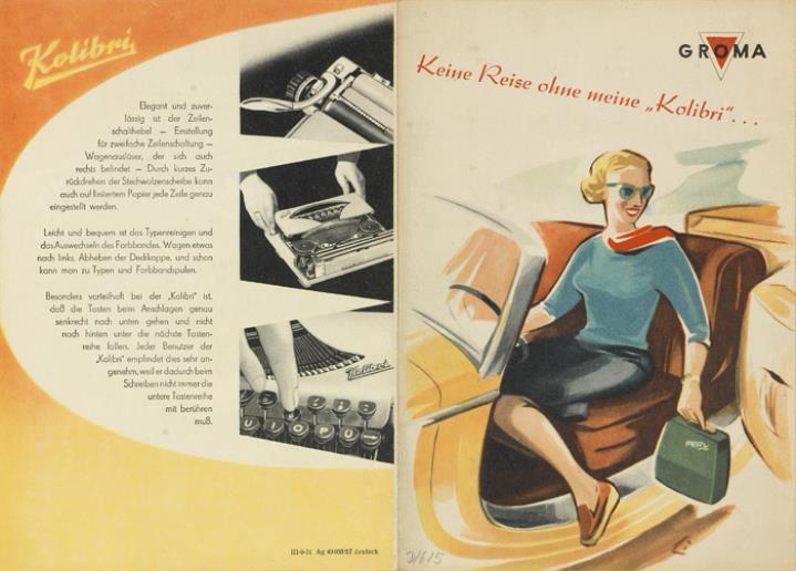 Faltprospekt für Schreibmaschine Groma Kolibri Nr. III-9-31 Ag 49058/57