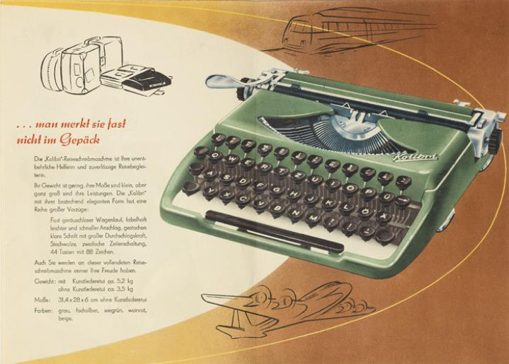 Next to literature on the history of technology, of the typewriter and the office, the Archive holds patent letters, textbooks and instruction manuals as well as historical postcards, letters, photographs and various kinds of advertising (leaflets and brochures, advertising stamps, newspaper ads, posters and signs, promotional gifts).