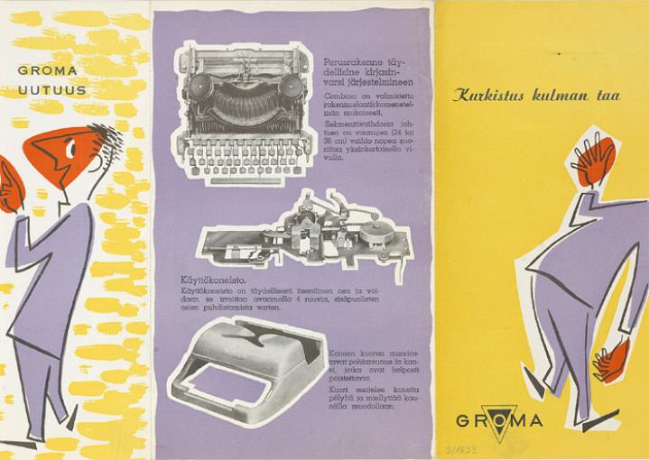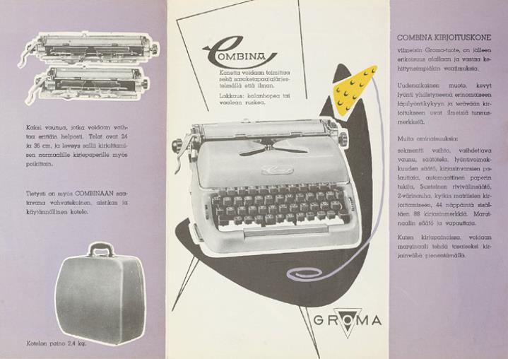 Faltprospekt in finnischer Sprache für Schreibmaschine Groma Combina
