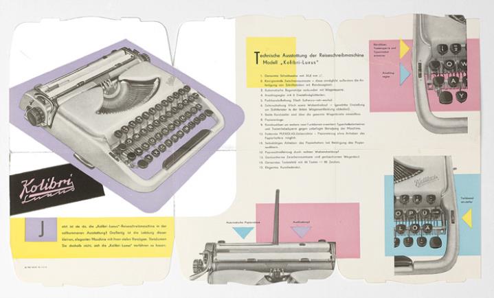 Faltprospekt in Form eines Schreibmaschinenkoffers für Schreibmaschine Groma Kolibri Luxus Nr. AG 048/180/60 10 V 4 12