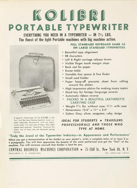 Next to literature on the history of technology, of the typewriter and the office, the Archive holds patent letters, textbooks and instruction manuals as well as historical postcards, letters, photographs and various kinds of advertising (leaflets and brochures, advertising stamps, newspaper ads, posters and signs, promotional gifts).
