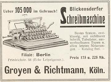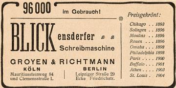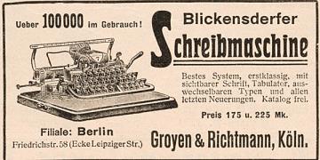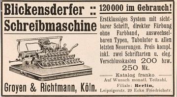 Ueber 100000 im Gebrauch! Blickensderfer Schreibmaschine