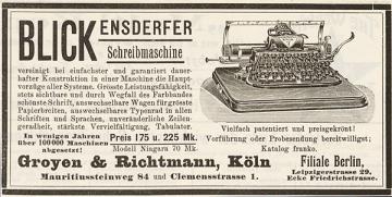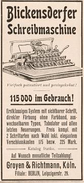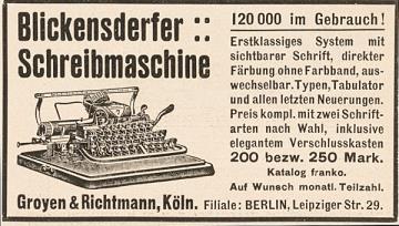 Werbeanzeige für Schreibmaschine Blickensderfer monochrom