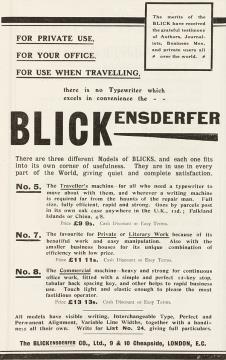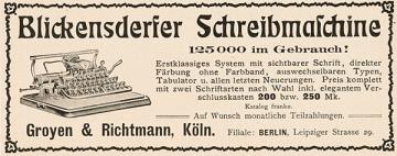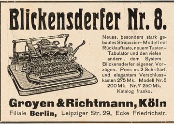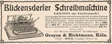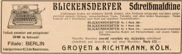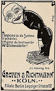 Werbeanzeige für Schreibmaschine Blickensderfer monochrom