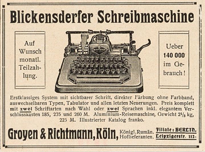 Werbeanzeige für Schreibmaschine Blickensderfer monochrom, zwei Exemplare
