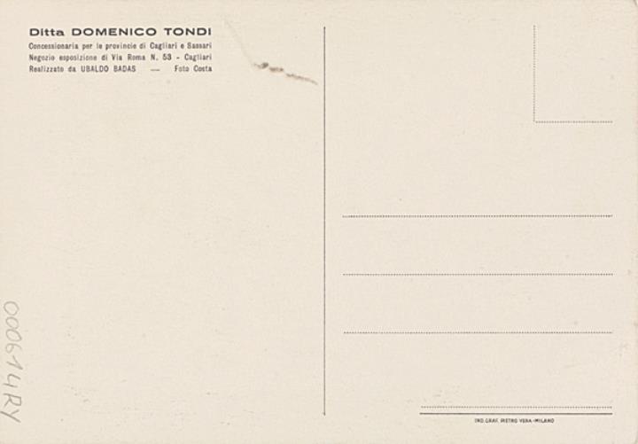 Illustrierte Postkarte; Fotografie, polychrom Rückseite: Geschäftsansicht; Blick durch die gläserne Fassade in das dekorativ gestaltete Innere; Innenarchitekt: Ubaldo Badas Vorderseite nicht beschrieben