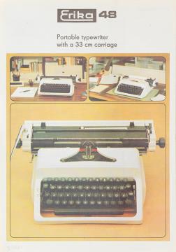 Prospekt für Schreibmaschine Erika 48 mit Breitwagen Portable typewriter with a 33 cm carriage Nr. III-9-4 It/G 443/83 (engl.)