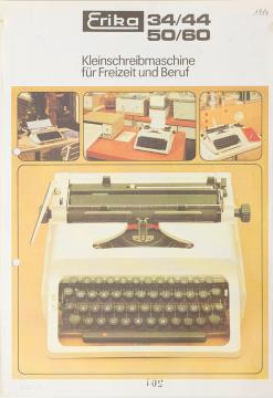 Prospekt für Schreibmaschine Erika 34, 44, 50 und 60 Kleinschreibmaschine für Freizeit und Beruf Nr. III-6-15 AG 25-22-82 Datum handschriftlich vermerkt