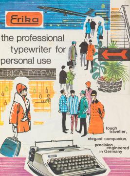 Next to literature on the history of technology, of the typewriter and the office, the Archive holds patent letters, textbooks and instruction manuals as well as historical postcards, letters, photographs and various kinds of advertising (leaflets and brochures, advertising stamps, newspaper ads, posters and signs, promotional gifts).
