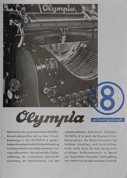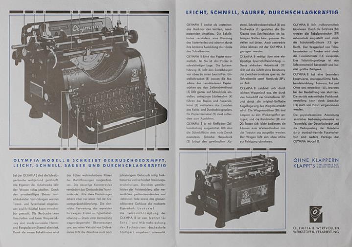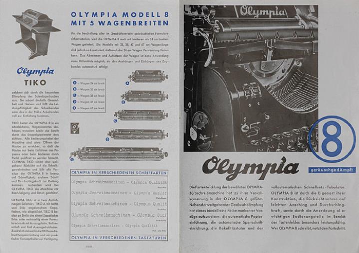 Faltprospekt für Schreibmaschine Olympia 8 Nr. 272/BJ 1