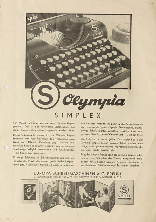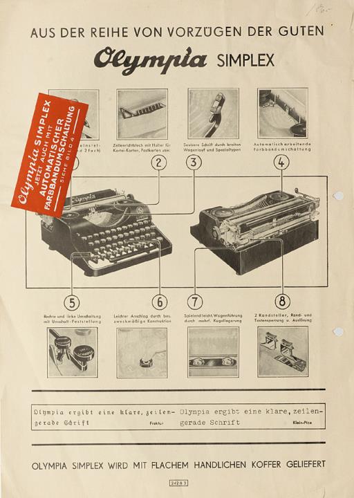 Prospekt für Schreibmaschine Olympia Simplex Nr. 242/B3