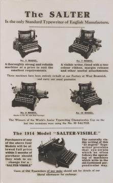 Werbepostkarte; Fotocollage, monochrom Rückseite: fünf Modelle der Schreibmaschine Salter mit Werbetext Vorderseite nicht beschrieben