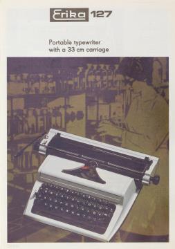 Prospekt für Schreibmaschine Erika 127 Portable typewriter with a 33 cm carriage Nr. III-9-4 Ag 25/103/81 (engl.)
