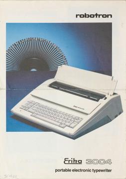 Faltprospekt für elektronische Schreibmaschine Erika 3004 Electronic Portable Typewriter Nr. Ag 25/26/88