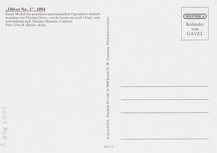 Next to literature on the history of technology, of the typewriter and the office, the Archive holds patent letters, textbooks and instruction manuals as well as historical postcards, letters, photographs and various kinds of advertising (leaflets and brochures, advertising stamps, newspaper ads, posters and signs, promotional gifts).