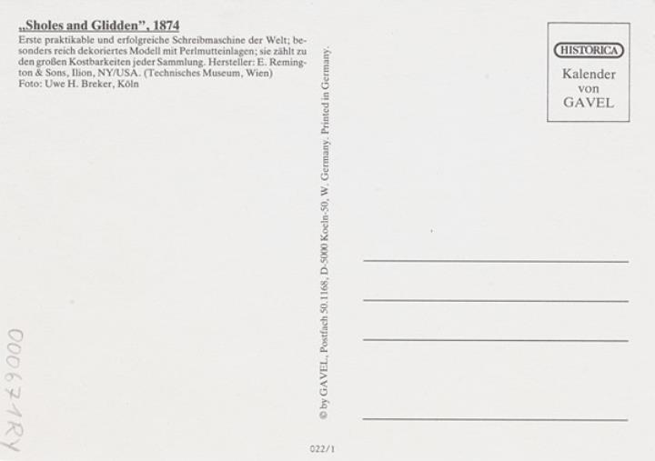 Next to literature on the history of technology, of the typewriter and the office, the Archive holds patent letters, textbooks and instruction manuals as well as historical postcards, letters, photographs and various kinds of advertising (leaflets and brochures, advertising stamps, newspaper ads, posters and signs, promotional gifts).