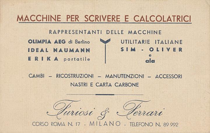 Macchine per scrivere e calcolatrici [...] Furiosi & Ferrari Milano