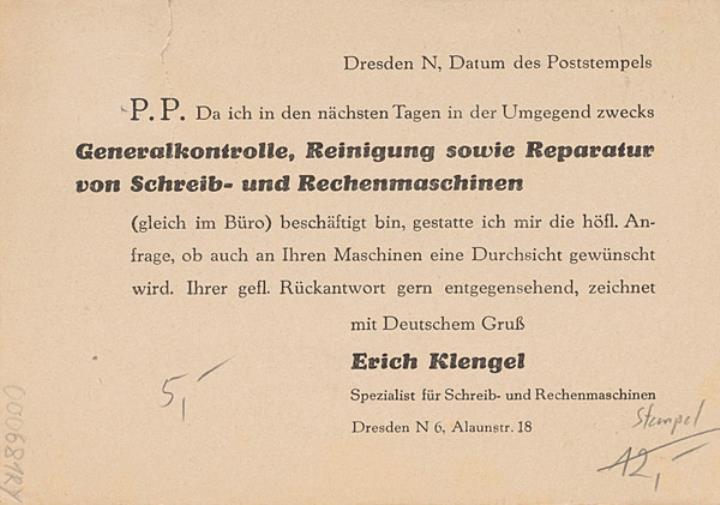 Erich Klengel Dresden Spezialist für Schreib- und Rechenmaschine
