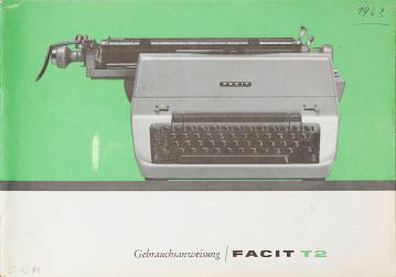 Bedienungsanleitung für Schreibmaschine Facit T2 Nr. 43.01.02.Ty.3M.11.62. Jahreszahl handschriftlich auf Prospekt vermerkt