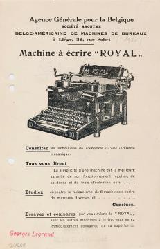 Next to literature on the history of technology, of the typewriter and the office, the Archive holds patent letters, textbooks and instruction manuals as well as historical postcards, letters, photographs and various kinds of advertising (leaflets and brochures, advertising stamps, newspaper ads, posters and signs, promotional gifts).