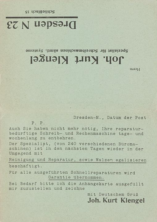 Joh. Kurt Klengel Dresden Spezialist für Schreibmaschinen-Reparaturen