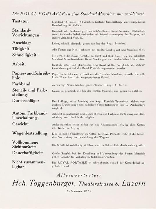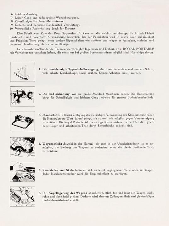 Faltprospekt für tragbare Schreibmaschine Royal Portable