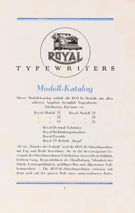 Royal Typewriters Modellkatalog