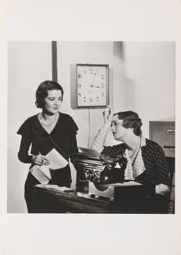 Illustrierte Postkarte; Fotografie, monochrom; Foto: Gordon Coster (c. 1930) Rückseite: Büroszene; zwei Sekretärinnen mit Schreibmaschine Vorderseite nicht beschrieben