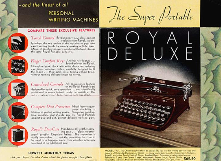 Faltprospekt für Schreibmaschine Royal Nr. PL4008