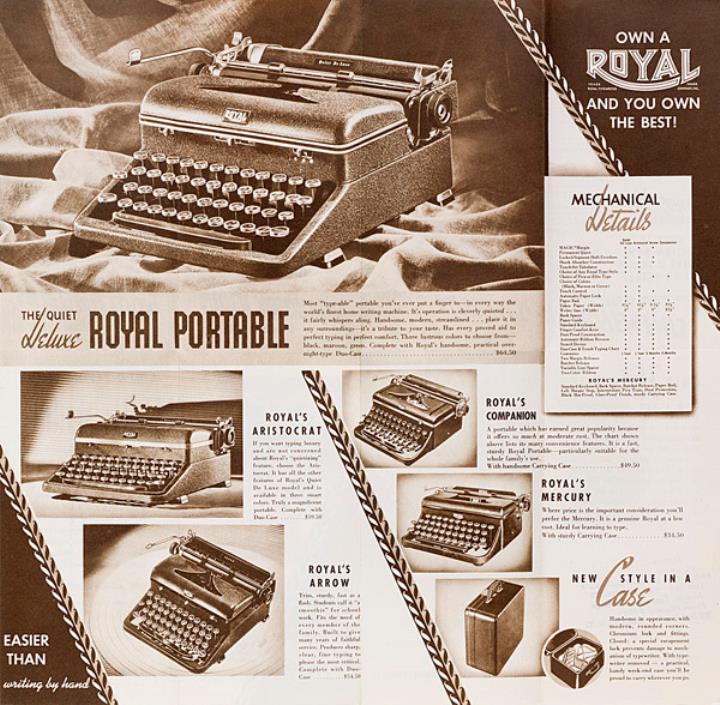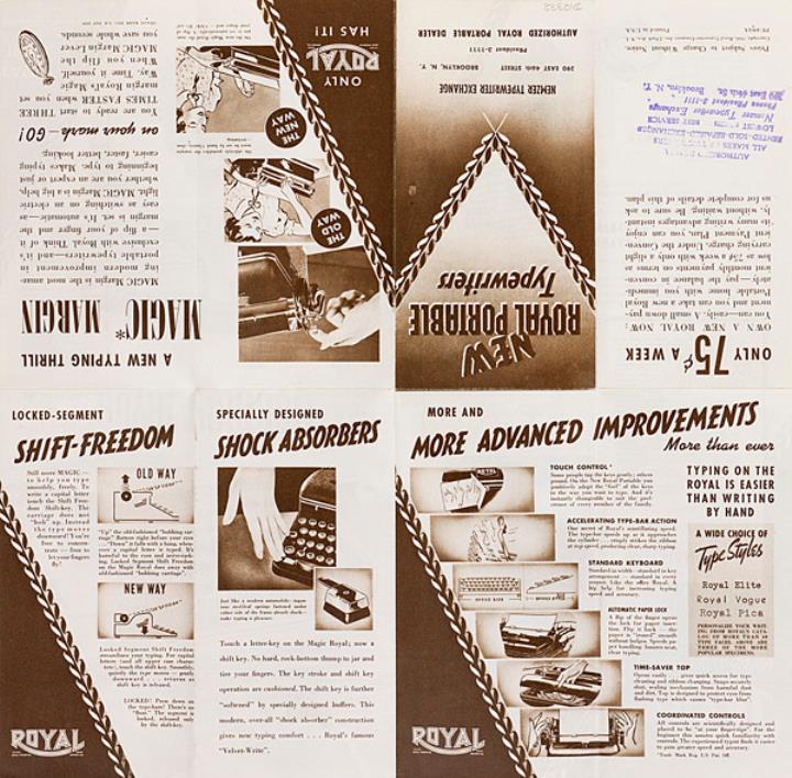 Faltprospekt für Schreibmaschine Royal Portable Nr. PF-4004A