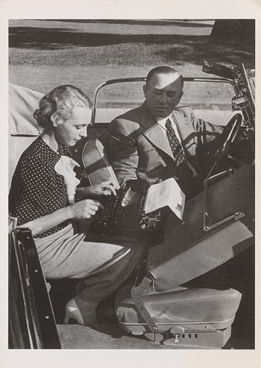 Tragbare Schreibmaschine, Frau, Sekretärin, Mann, Automobil, Reiseschreibmaschine