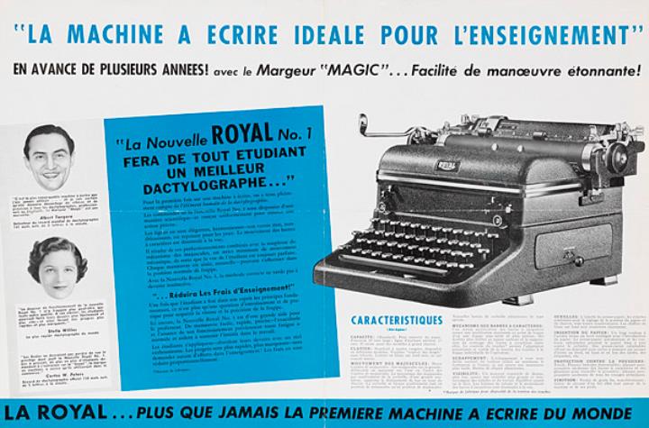 Faltprospekt für Schreibmaschine Royal La première machine à écrire du monde Nr. ESL-3808-F