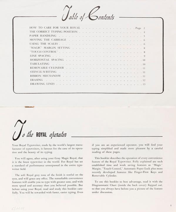 Bedienungsanleitung für Schreibmaschine Royal Nr. A-600-3-51