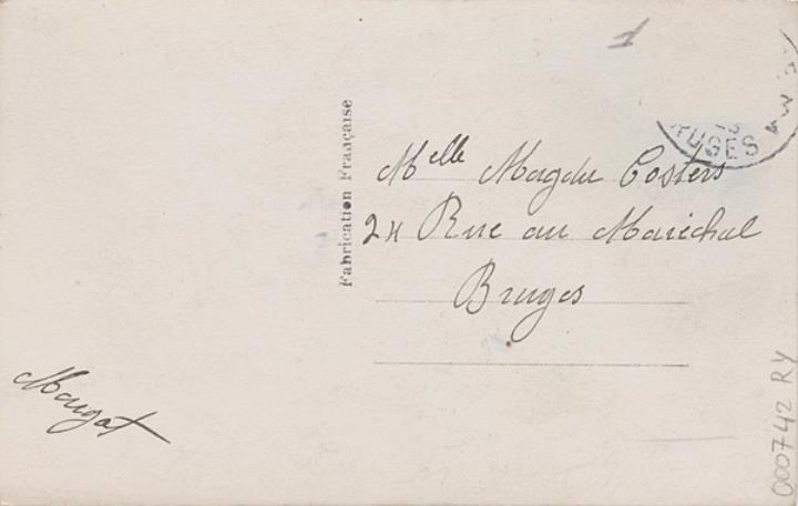 Illustrierte Postkarte; Fotografie, koloriert; Serie Rex 1679 Rückseite: Frau mit Schreibmaschine, Blumen als Dekoration Vorderseite beschrieben