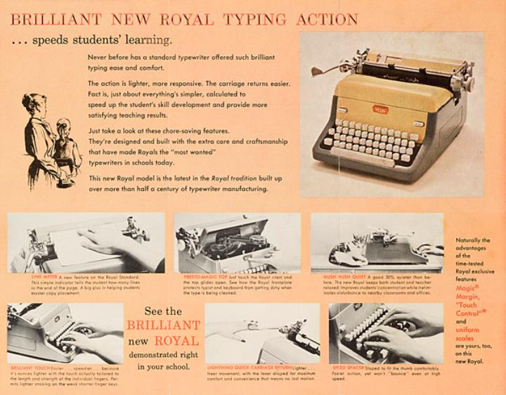 Faltprospekt für Schreibmaschine Royal Standard Brilliant for school use in every way Nr. OS2B-56-650