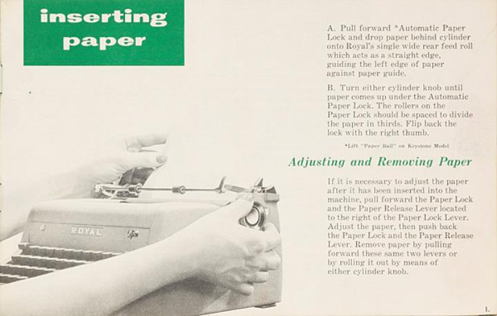 Bedienungsanleitung für Schreibmaschine Royal Quiet de Luxe; mit Übungstexten für das Maschinenschreiben Nr. A-825-AC-4/53