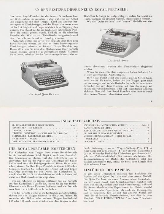 Bedienungsanleitung für Schreibmaschine Royal Quiet de Luxe und Arrow Nr. A-740-AC-2/51-G