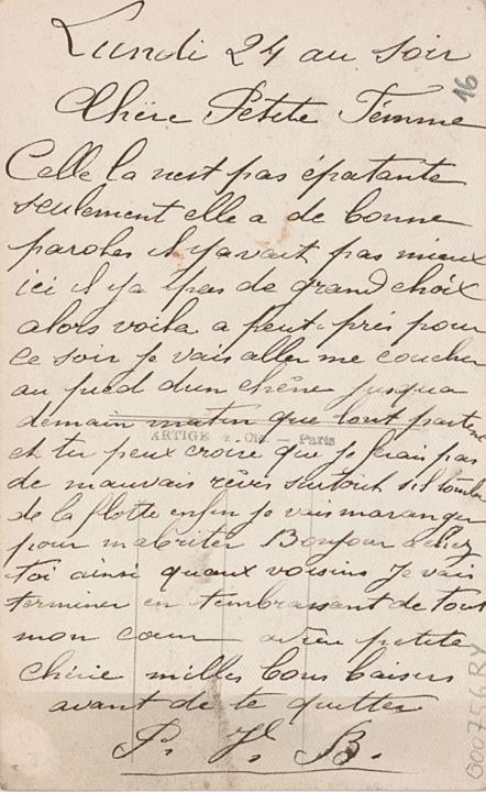 Illustrierte Postkarte; Grafik, koloriert; Serie La Favorite Nr. 2583 Rückseite: Frau mit Schreibmaschine, rechts Rundbild mit Mann (Soldat), Text entlang der Tasten Vorderseite beschrieben