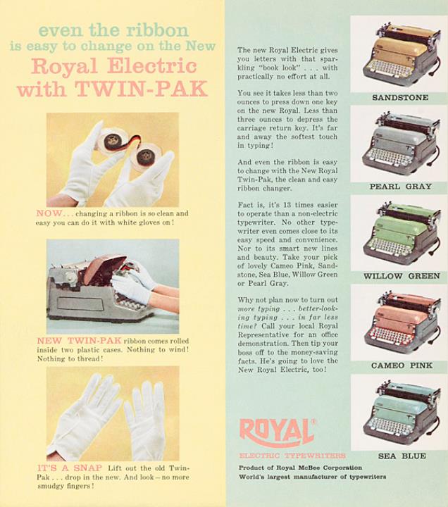 Faltprospekt für elektrische Schreibmaschine Royal Nr. E2B-56-585