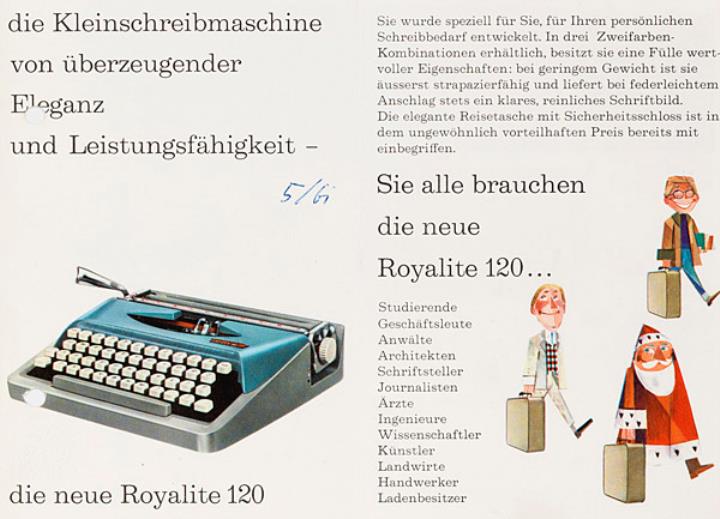 Faltprospekt für tragbare Schreibmaschine Royal Royalite 120 Nr. 1103