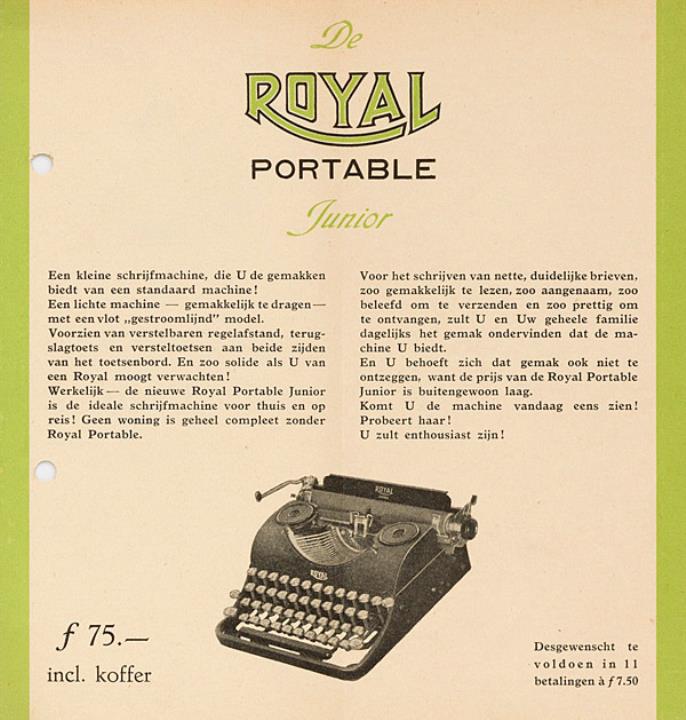 Faltprospekt für Schreibmaschine Royal Junior Nr. R820